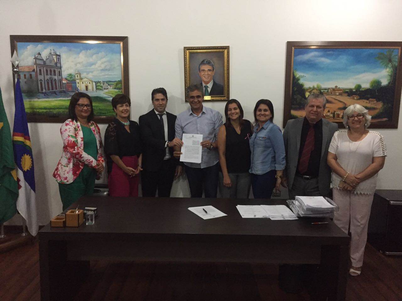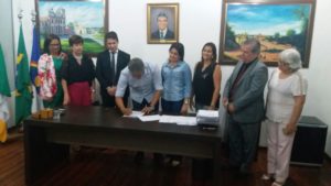 A Faculdade de Medicina de Olinda (FMO) e Prefeitura de Igarassu celebraram, nesta segunda-feira (16), convênio de cooperação técnica firmado entre a instituição de ensino e a secretaria de Saúde do Município. A assinatura do convênio aconteceu no gabinete do prefeito Mário Ricardo e contou com as presenças do Diretor Geral da FMO, Inácio Barros Melo Neto, da Coordenadora de Relações Institucionais, Tereza Miranda, a vice-prefeita, Elcione Ramos, da Secretária de Saúde, Patrícia Amélia, da Secretária Executiva de Saúde, Jacqueline Tavares, e da Coordenadora de Saúde Mental, Telma Leal e secretários municipais.